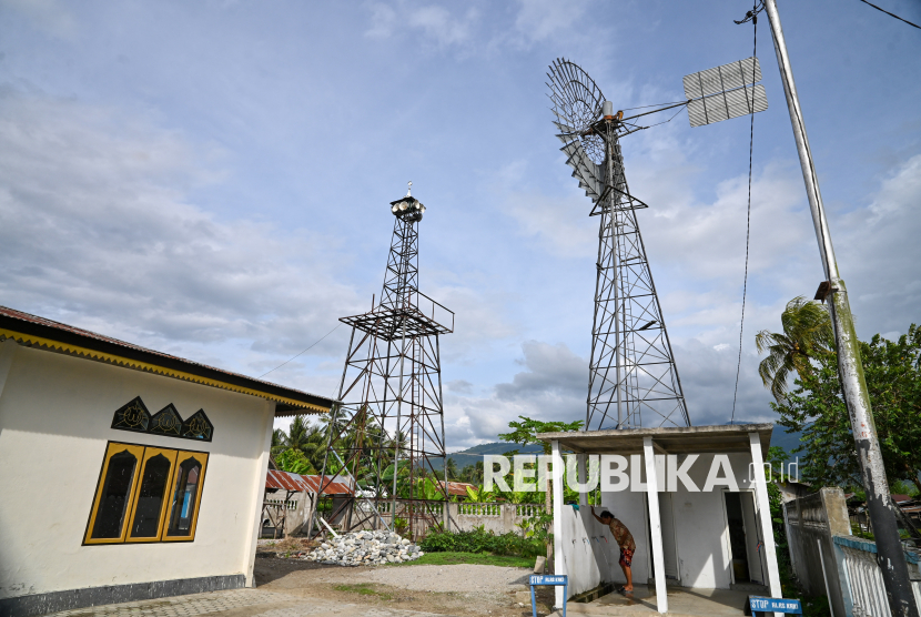 REPUBLIKA.CO.ID, SIGI -- Sebuah kincir angin sebagai sumber energi listrik terpasang di dekat menara Masjid Assyuhadaai yang menggunakan tenaga angin sebagai sumber energi di Desa Sidondo I, Sigi, Sulawesi Tengah, Selasa (25/11/2025).