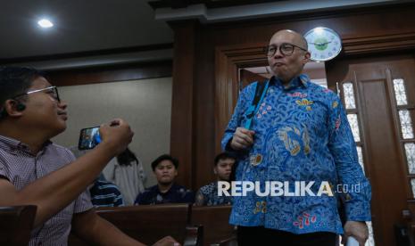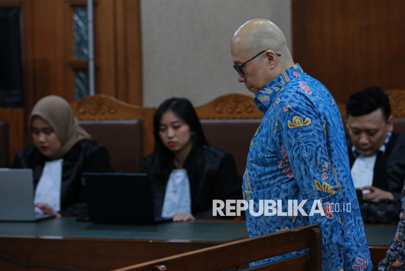 REPUBLIKA.CO.ID, JAKARTA -- Terdakwa eks Direktur Utama PT Taspen Antonius NS Kosasih bersiap menjalani sidang pembacaan vonis di Pengadilan Tipikor, Jakarta, Senin (6/11/2025).