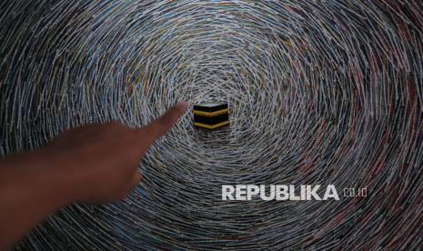 REPUBLIKA.CO.ID, JAKARTA -- Pengunjung mengamati karya yang dipajang pada Pameran Seni Rupa Jakarta Artmospher 2025 di Tebet Eco Park, Jakarta, Senin (20/10/2025).