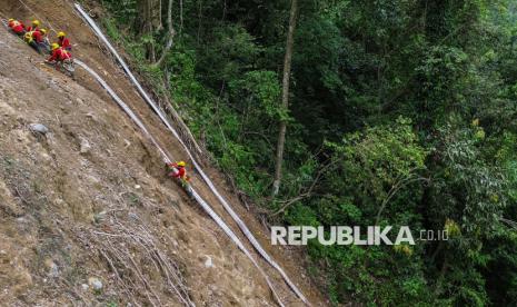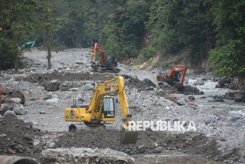 REPUBLIKA.CO.ID, TANAH DATAR -- Pekerja pengerjaan jalan di kawasan Lembah Anai, Tanah Datar, Sumatera Barat, Jumat (30/1/2026).