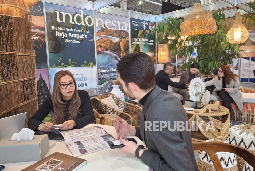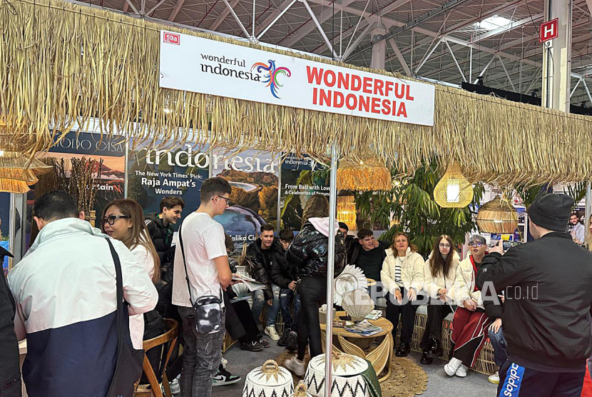 Para pengunjung memadati Paviliun Wonderful Indonesia pada Pameran Pariwisata di Bucharest, Rumania, pekan lalu. Wisatawan Rumania ke Indonesia terus meningkat dalam beberapa tahun terakhir. Promosi pariwisata Indonesia di Rumania terus digalakkan agar semakin banyak warga Rumania berwisata ke Indonesia. Salah satu upaya yang dilakukan adalah kehadiran Indonesia dalam Romanian Tourism Fair (TTR) di Bucharest, Rumania pada 20-23 November 2025. (FOTO : Dok Republika)