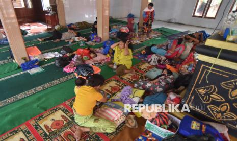 Warga terdampak banjir mengungsi di Surau Kalampayan, Nagari Kampuang Galapuang, Ulakan Tapakis, Padang Pariaman, Sumatera Barat, Selasa (25/11/2025). Berdasarkan data BPBD Padang Pariaman, sebanyak 3.076 unit rumah terendam banjir luapan sungai, dengan total warga terdampak mencapai 3.076 KK / 9.228 jiwa di 15 nagari sejak Senin (24/11/2025) dan terus meluas akibat intensitas hujan tinggi yang menyebabkan pemerintah daerah menetapkan status siaga darurat banjir dan longsor. (FOTO : ANTARA FOTO/Iggoy el Fitra)