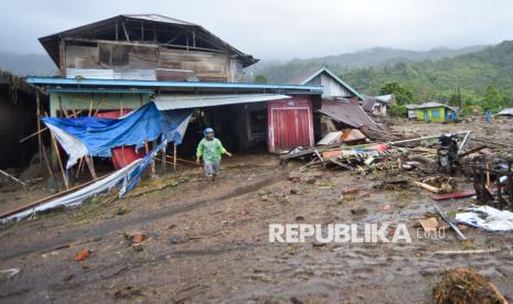 Warga berjalan melewati material longsor di Toboh Tangah, Nagari Malalak Timur, Agam, Sumatera Barat, Kamis (27/11/2025). Longsor yang terjadi karena tingginya intensitas hujan di daerah perbukan pada Rabu (26/11/2025) tersebut mengakibatkan puluhan rumah rusak dan sedikitnya tujuh korban meninggal dunia, belasan lainnya hilang, dan akses menuju lokasi putus total. (FOTO : ANTARA FOTO/Iggoy el Fitra)