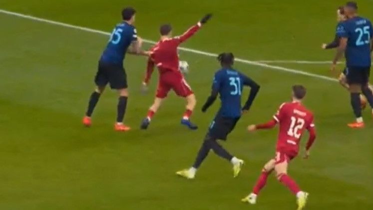 What happened: Liverpool's Dominik Szoboszlai delivered a corner deep into the Inter Milan penalty area, where both Hugo Ekitike and Virgil van Dijk jumped to challenge for the ball. Van Dijk got the first contact and headed the ball back toward goal, via a deflection off the arm of Ekitike, then on to the head of Ibrahima Konaté who scored.