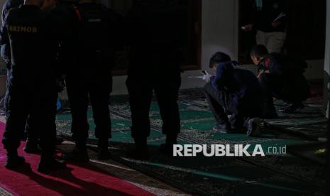 Tim Laboratorium Forensik (Labfor) Bareskrim Polri melakukan olah TKP di lokasi ledakan di SMAN 72 Jakarta, Kelapa Gading, Jakarta, Jumat (7/11/2025). Kapolda Metro Jaya Irjen Pol Asep Edi Suheri mengungkapkan hingga saat ini pukul 19.00 WIB proses olah TKP masih berlangsung dan pihak kepolisian masih melakukan pendalaman terkait insiden ledakan tersebut. (FOTO : Republika/Thoudy Badai)