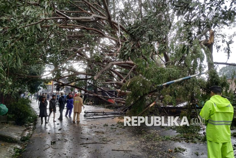 Hujan deras disertai angin kencang menyebabkan banyak pohon tumbang di kota Bandung. Sejumlah akses jalan pun sempat terputus tidak bisa dilalui kendaraan.