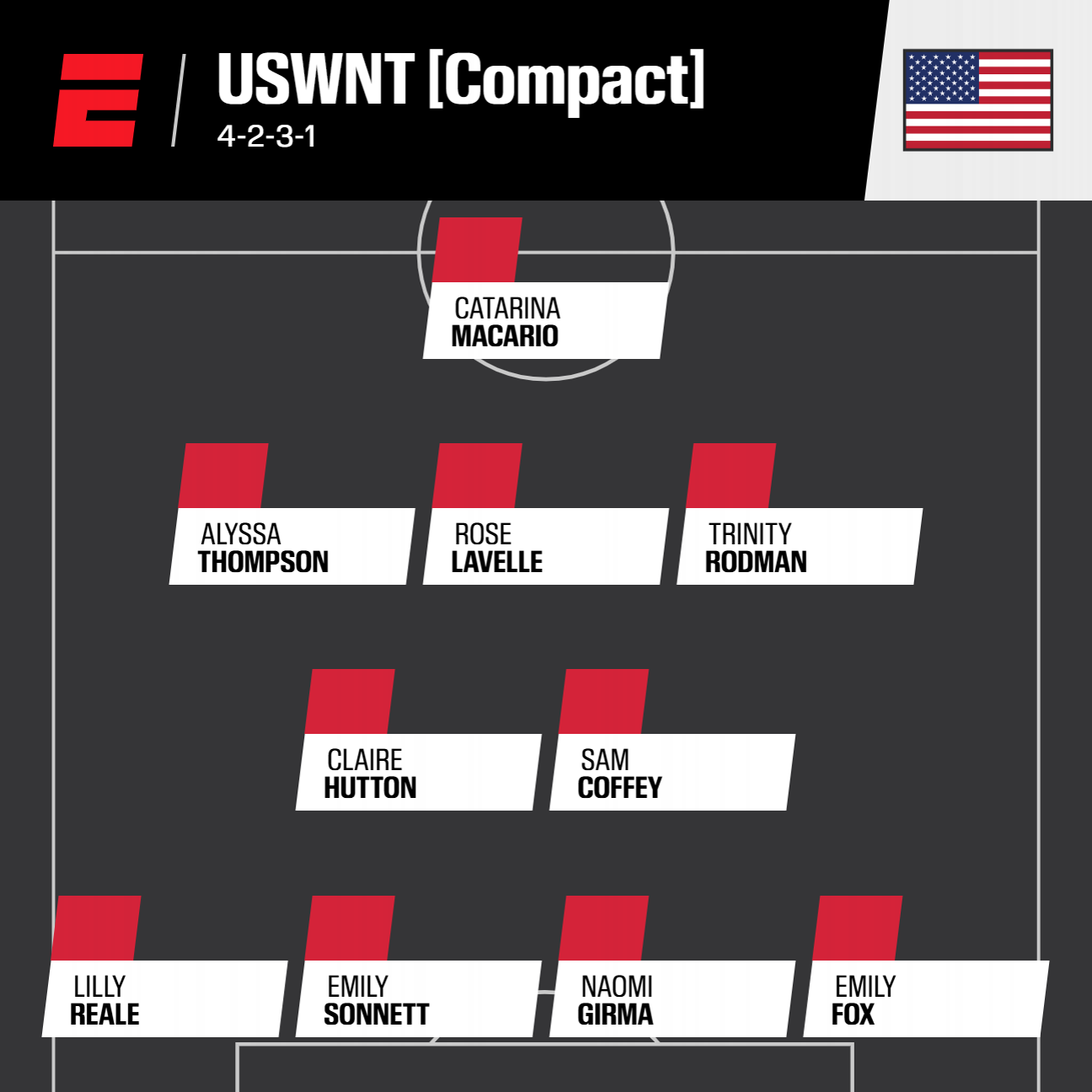 You can see what we predict the lineup could look like if the USWNT takes an aggressive disposition (as it did recently against Argentina), and if Hayes feels she needs more cover in a more heavyweight match -- two recent Canada fixtures are tangible examples.