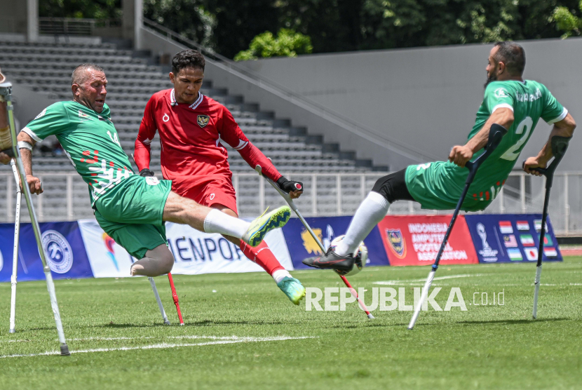 REPUBLIKA.CO.ID, JAKARTA -- Timnas Amputasi Indonesia berhadapan dengan Timnas Amputasi Suriah dalam pertandingan fase grup Kualifikasi Piala Dunia Sepak Bola Amputasi 2026 Zona Asia di Stadion Madya, Kompleks GBK, Senayan, Jakarta, Ahad (9/11/2025).
